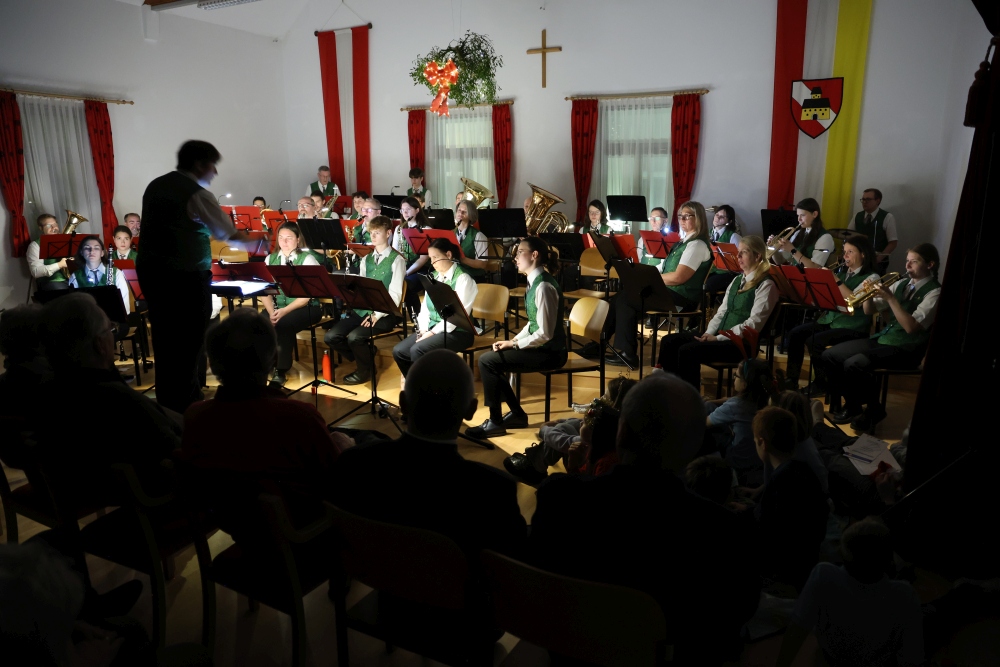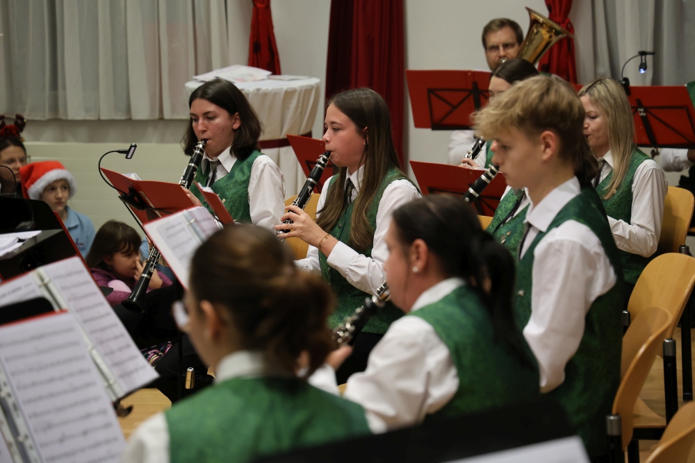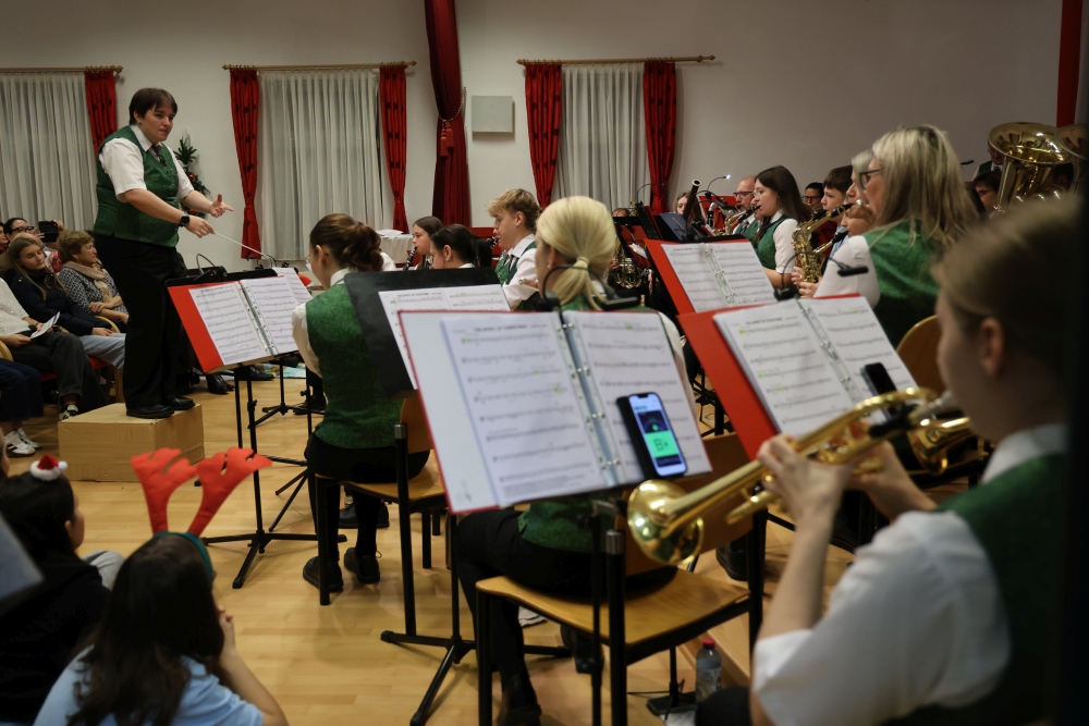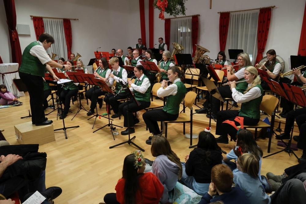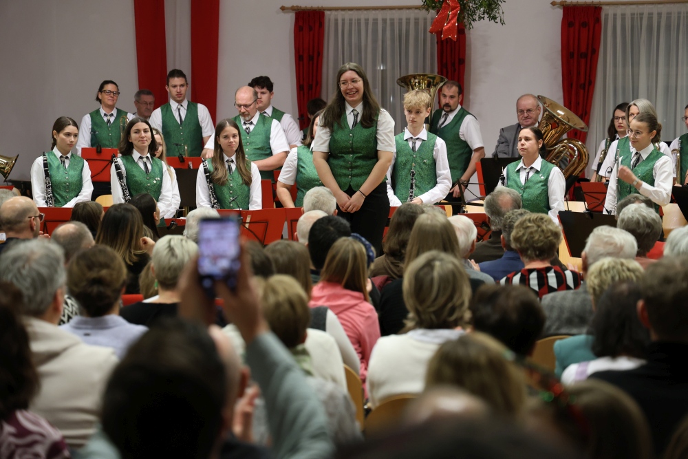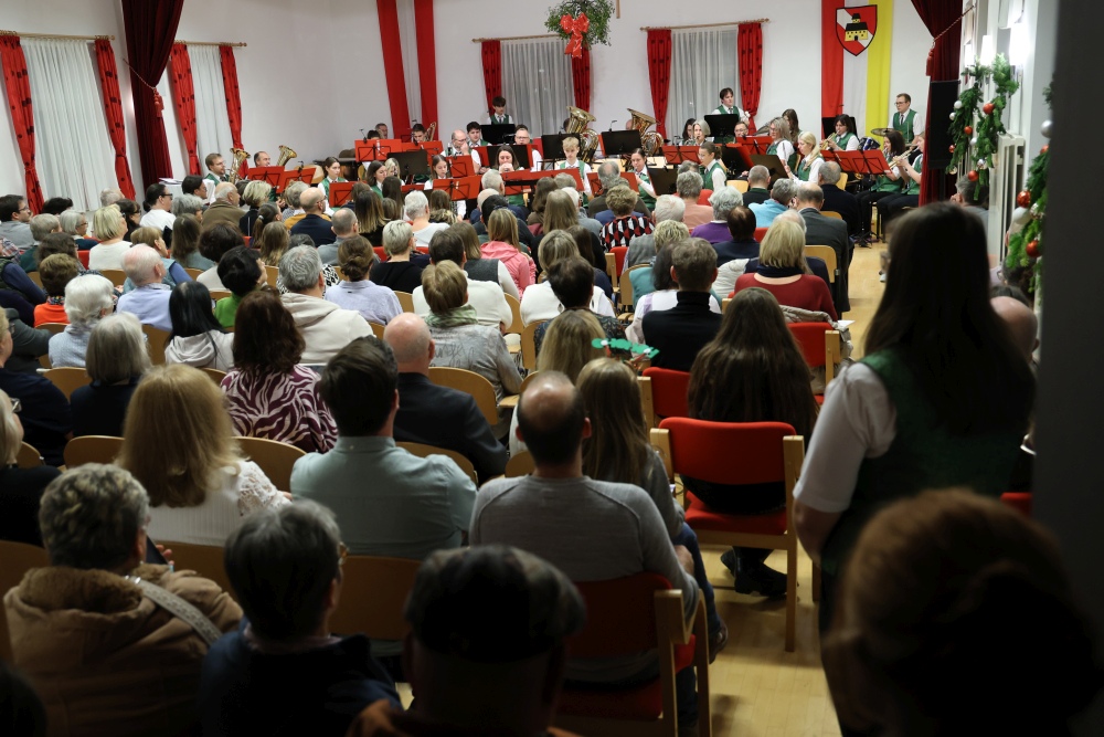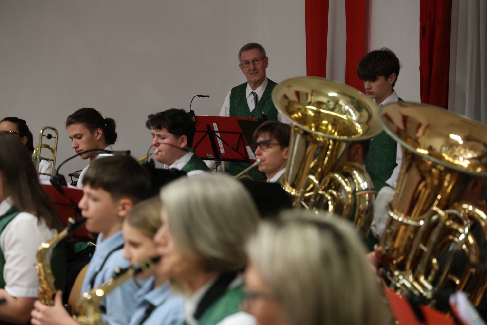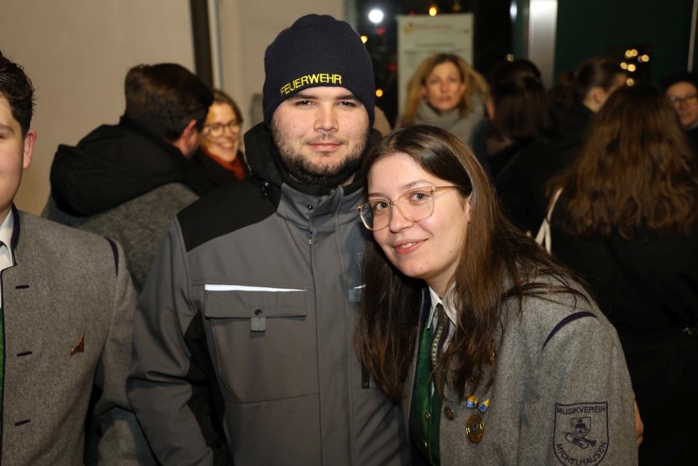 Musikalisch eröffnete wie gewohnt die MusikJugend Michelhausen und zeigte mit einigen Arrangements ihr Können. Unter tosendem Applaus wurden verdiente Musikerinnen und Musiker geehrt, die höchste Auszeichnung war das goldene Leistungsabzeichen für Sabrina Jäger – ein sehr selten gemachtes, weil schwieriges Abzeichen. Die Stammkapelle des Musikvereins Michelhausen führte das Publikum noch weiter in Weihnachtsstimmung. Der musikalische Bogen spannte sich dabei von „Alpine Adventure“ über „All I Want For Christmas Is You“ bis zur „Winterrose“ mit lyrischen Texten von Eva Riedmayer. Die Liedauswahl war perfekt inszeniert von den Kapellmeisterinnen Corina Haslinger und Sabrina Jäger und hervorragend umgesetzt von allen Musikerinnen und Musikern. Für den kulinarischen Ausklang des erfolgreichen Konzertes sorgten die Marktenderinnen und Marketender mit Glühwein, Punsch, Mehlspeisen und Snacks.