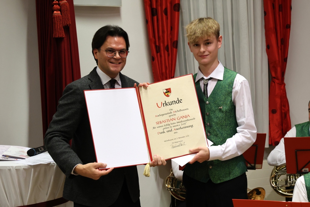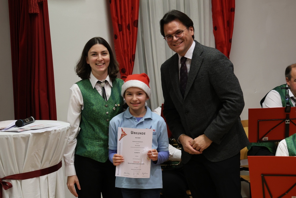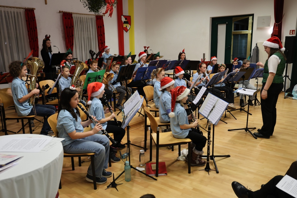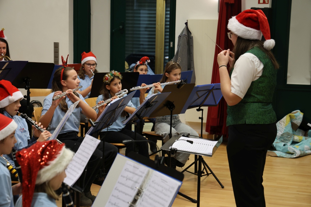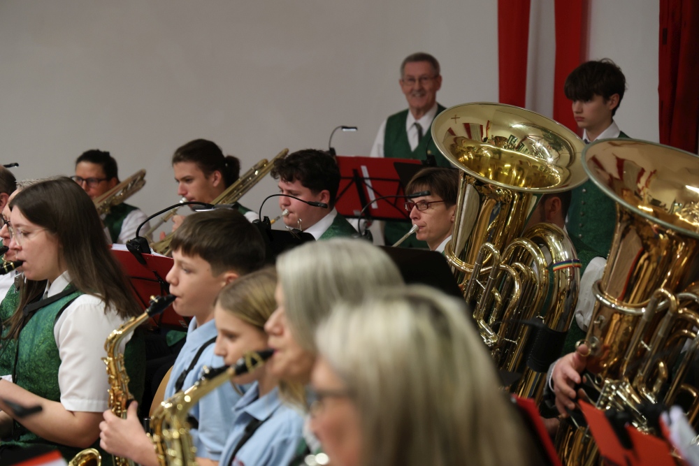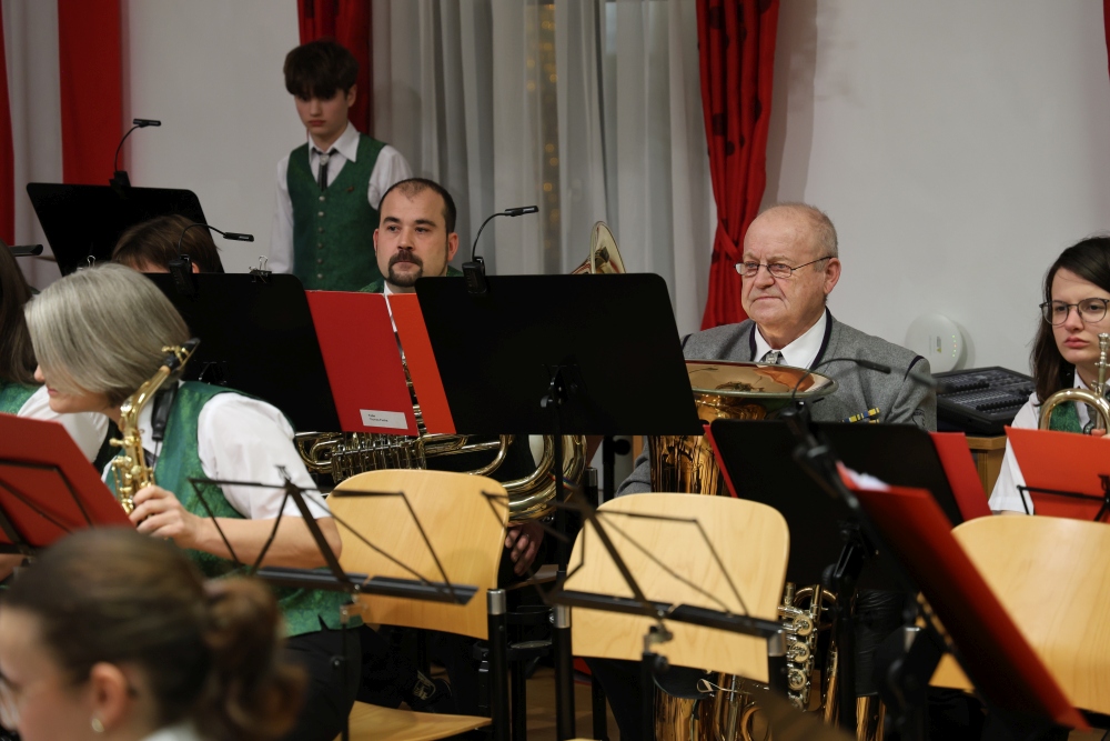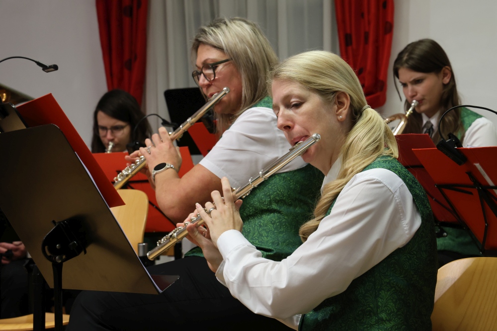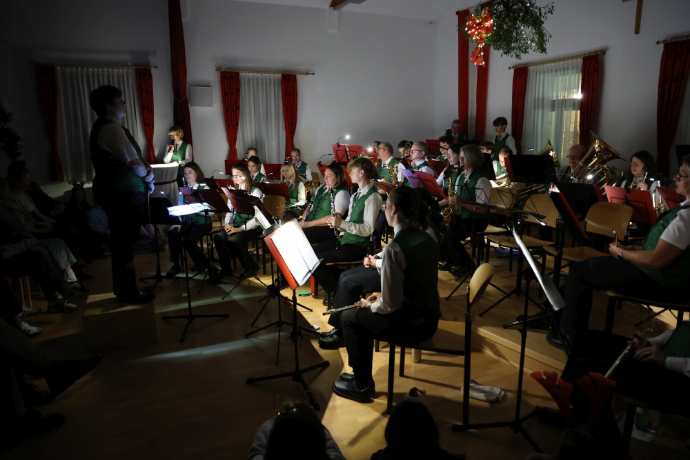 Musikalisch eröffnete wie gewohnt die MusikJugend Michelhausen und zeigte mit einigen Arrangements ihr Können. Unter tosendem Applaus wurden verdiente Musikerinnen und Musiker geehrt, die höchste Auszeichnung war das goldene Leistungsabzeichen für Sabrina Jäger – ein sehr selten gemachtes, weil schwieriges Abzeichen. Die Stammkapelle des Musikvereins Michelhausen führte das Publikum noch weiter in Weihnachtsstimmung. Der musikalische Bogen spannte sich dabei von „Alpine Adventure“ über „All I Want For Christmas Is You“ bis zur „Winterrose“ mit lyrischen Texten von Eva Riedmayer. Die Liedauswahl war perfekt inszeniert von den Kapellmeisterinnen Corina Haslinger und Sabrina Jäger und hervorragend umgesetzt von allen Musikerinnen und Musikern. Für den kulinarischen Ausklang des erfolgreichen Konzertes sorgten die Marktenderinnen und Marketender mit Glühwein, Punsch, Mehlspeisen und Snacks.