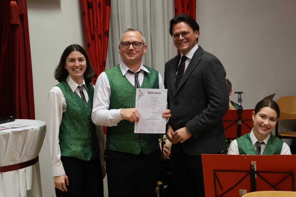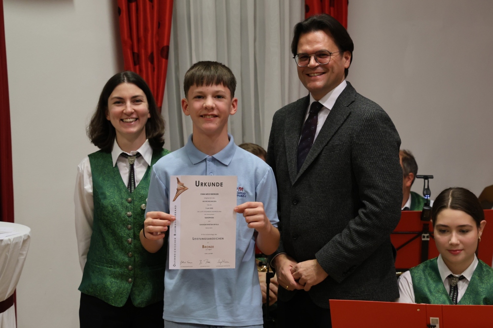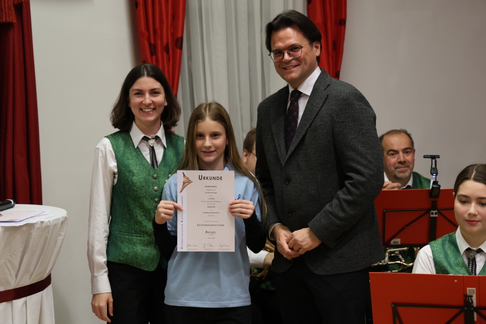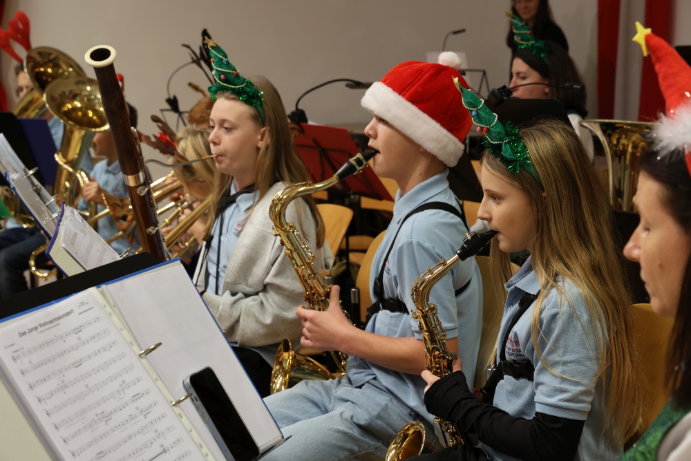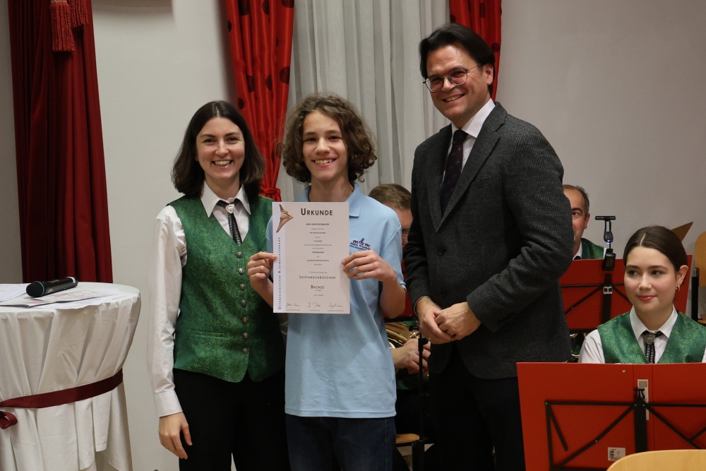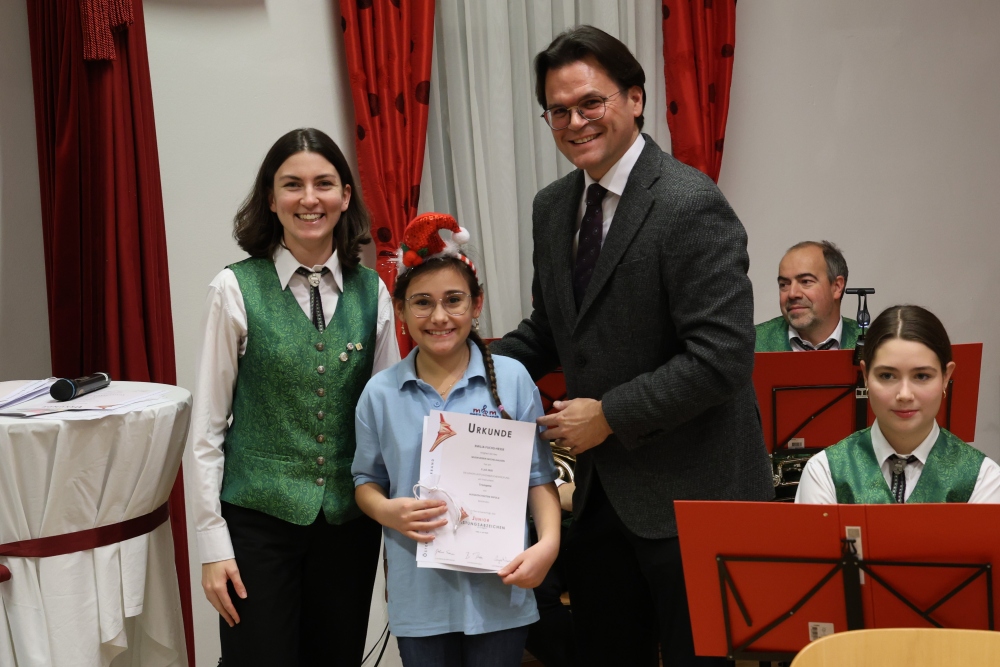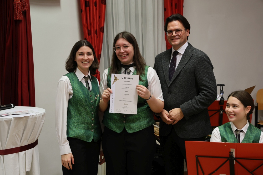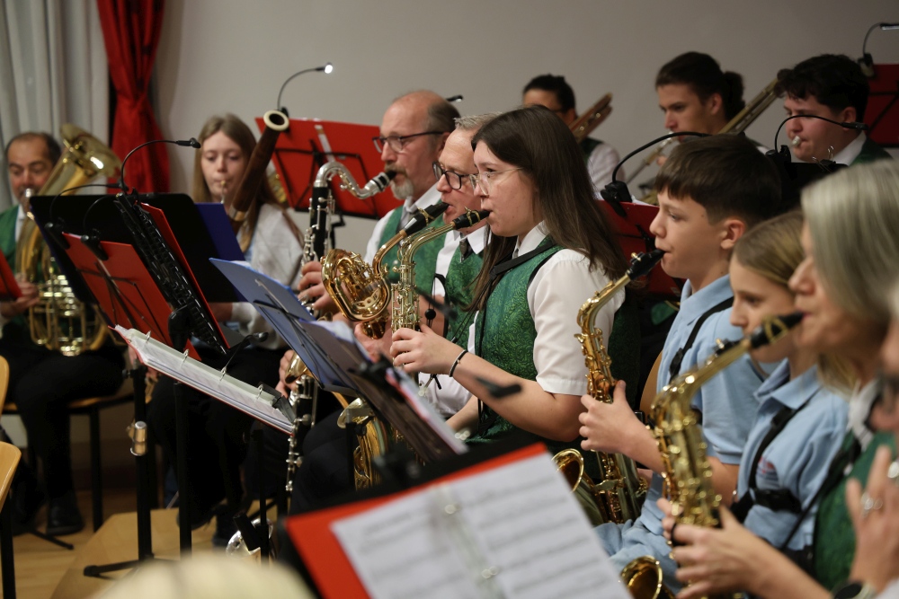 Musikalisch eröffnete wie gewohnt die MusikJugend Michelhausen und zeigte mit einigen Arrangements ihr Können. Unter tosendem Applaus wurden verdiente Musikerinnen und Musiker geehrt, die höchste Auszeichnung war das goldene Leistungsabzeichen für Sabrina Jäger – ein sehr selten gemachtes, weil schwieriges Abzeichen. Die Stammkapelle des Musikvereins Michelhausen führte das Publikum noch weiter in Weihnachtsstimmung. Der musikalische Bogen spannte sich dabei von „Alpine Adventure“ über „All I Want For Christmas Is You“ bis zur „Winterrose“ mit lyrischen Texten von Eva Riedmayer. Die Liedauswahl war perfekt inszeniert von den Kapellmeisterinnen Corina Haslinger und Sabrina Jäger und hervorragend umgesetzt von allen Musikerinnen und Musikern. Für den kulinarischen Ausklang des erfolgreichen Konzertes sorgten die Marktenderinnen und Marketender mit Glühwein, Punsch, Mehlspeisen und Snacks.